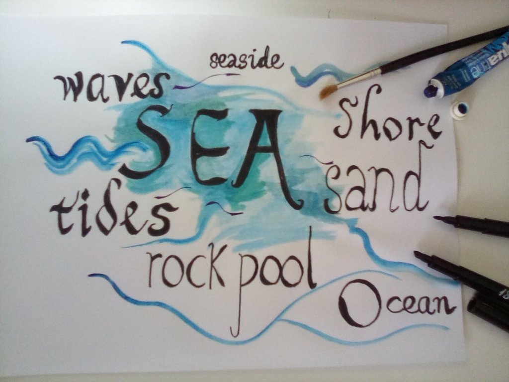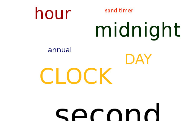 *Create a word picture on the theme of time. Write words on the theme (like midnight or year) in different colours or styles, in upper or lower case letters, or in different sizes. You could create your word picture using a graphic design programme as I have here.