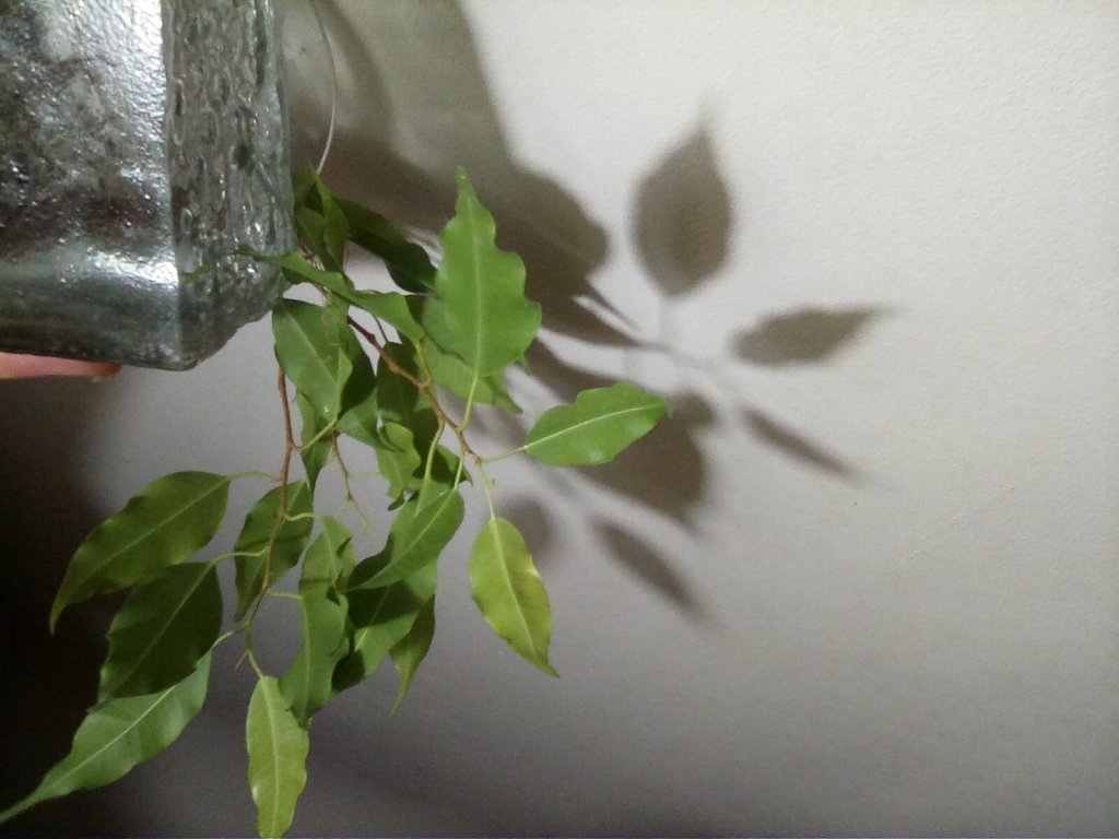 *Experiment with painting objects and their shadows: maybe a tree and the shadow it casts, or an ornament and its shadow. A shadow will be cast on the side of the object opposite to or away from the light. Or try photographing objects and their shadows, like my photo here of a houseplant and its shadow by lamplight.